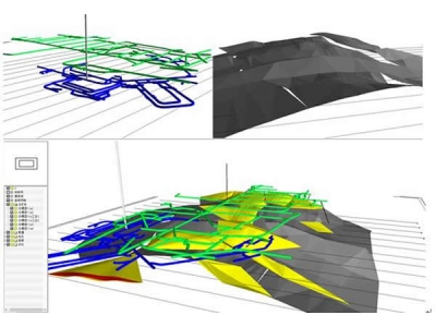 利用二/三維一體化技術創建逼真的井上下三維實體模型,可用于風險預測、空間分析、礦山事故分析等,從而實現礦山管理透明化、精細化、智能化。