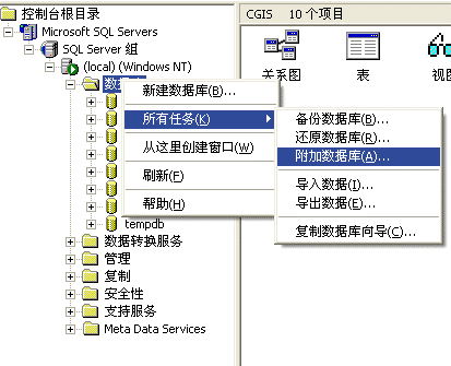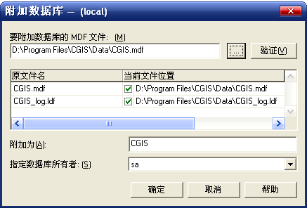 如果先安裝本軟件,后安裝SQL Server,就要打開SQL Server企業管理器,附加數據庫,如圖1-1所示。選擇安裝路徑下的CGIS.mdf文件,附加為CGIS,指定數據庫所有者為sa,如圖1-2所示,點擊確定,退出企業管理器。