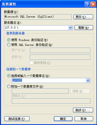 點擊登陸地質信息管理系統,首先要把數據庫連接好,點擊界面1-5中系統,出現界面1-6,服務器名同上,數據庫名同上。然后確定即可。